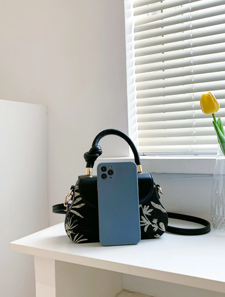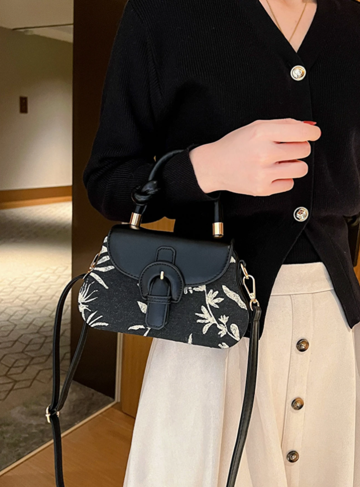 حقيبة كتف أنيقة مزينة بنمط الأوراق