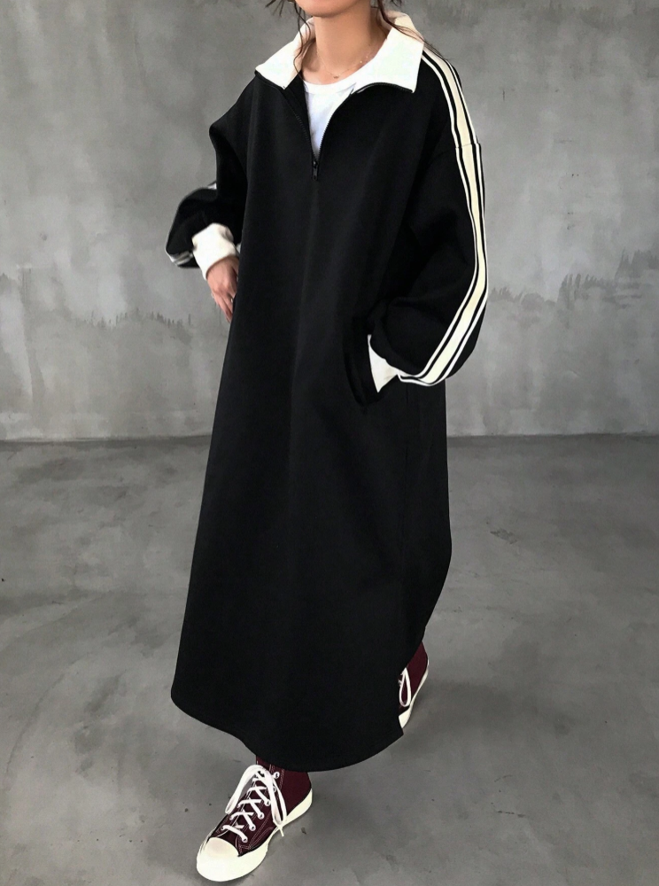 فستان كاجوال متوسط الطول مثالي لإطلالة بسيطة وأنيقة في نفس الوقت يمكن ارتداؤه في الأيام غير الرسمية أو أثناء الأنشطة اليومية، ويمنحكِ راحة وأناقة طوال اليوم.