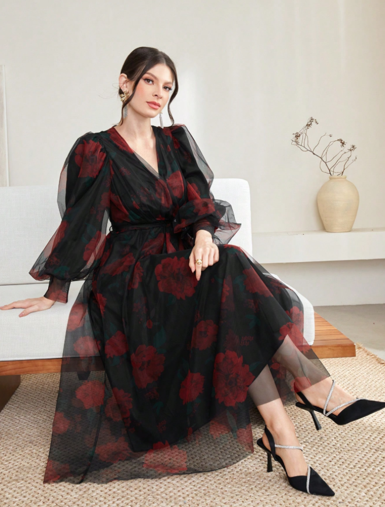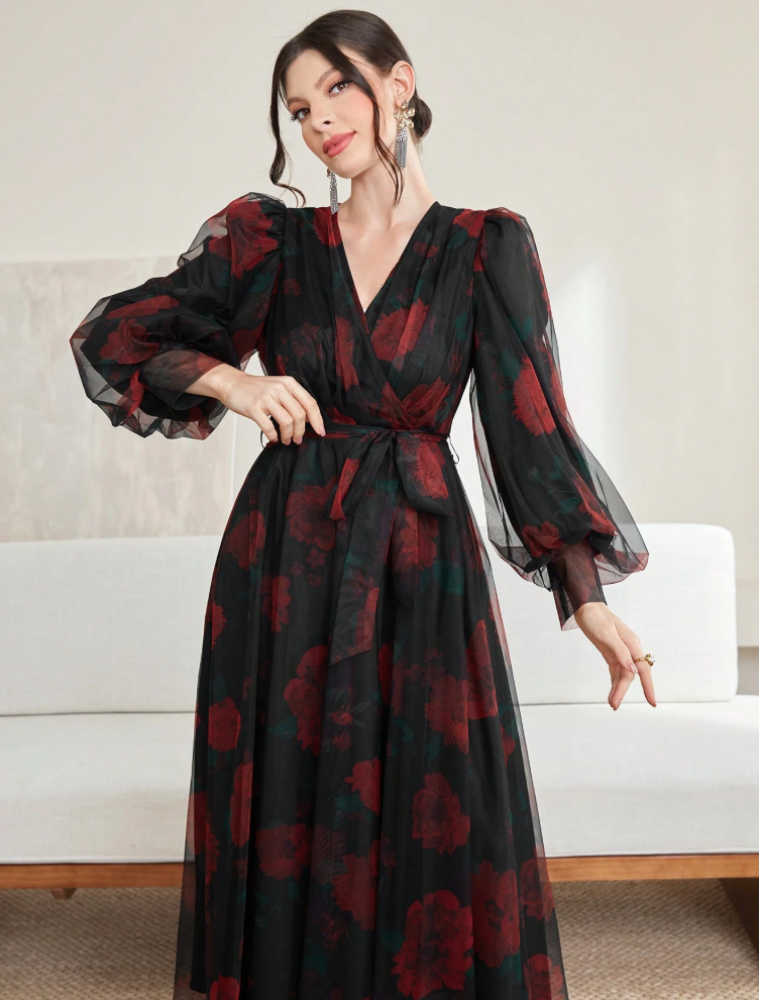 فستان كم فوانيس طويل