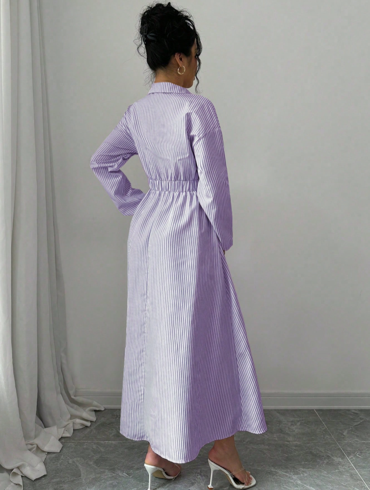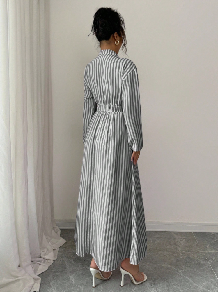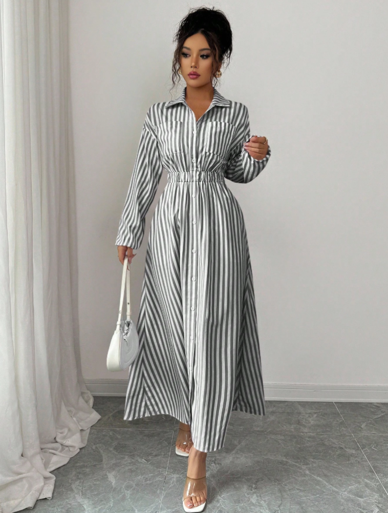 - اسم المنتج: فستان ماكسي قميص مخطط للسيدات